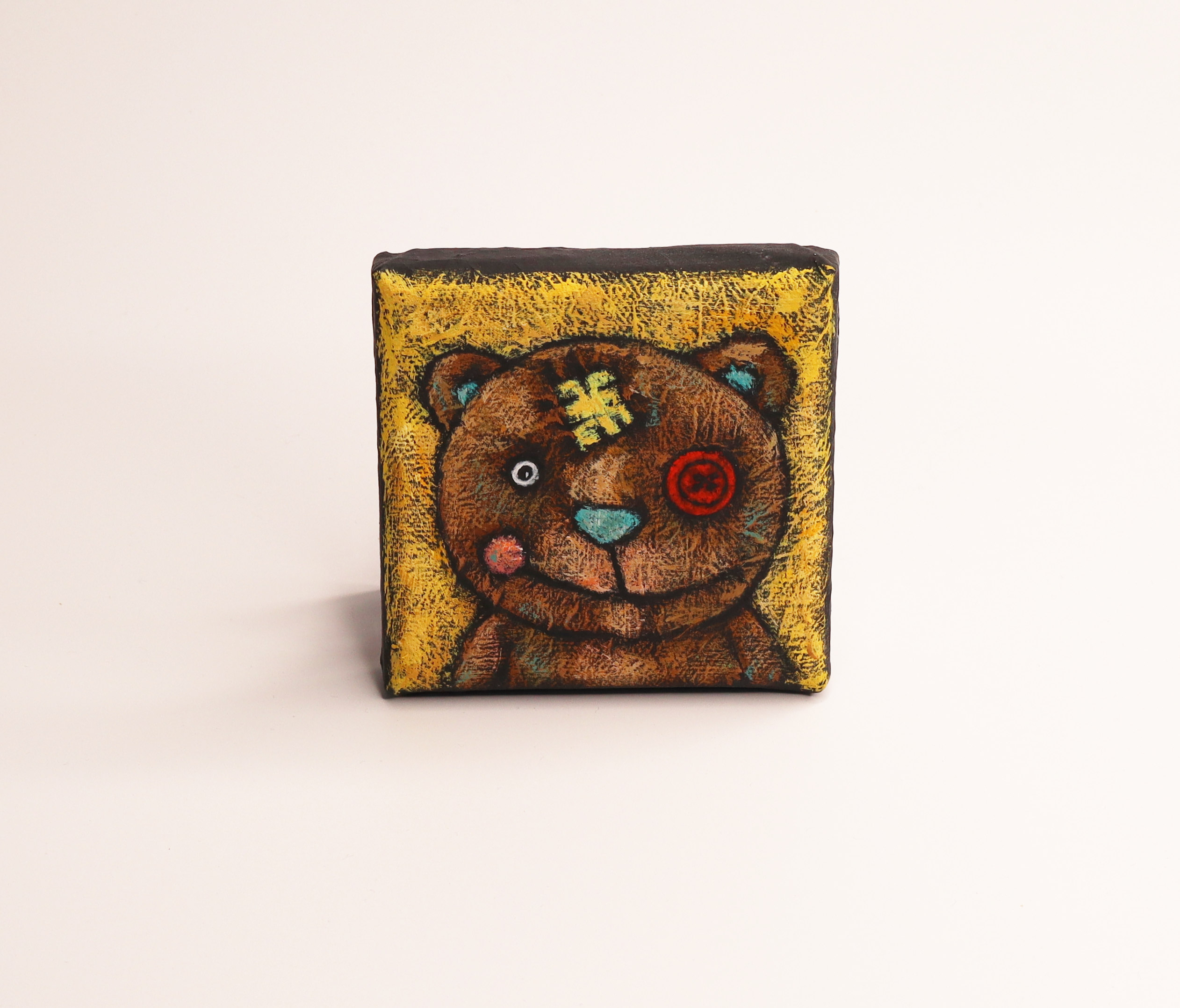 This baby bear painting is made on a canva covered with paper and painted in several layers with gouache paint.